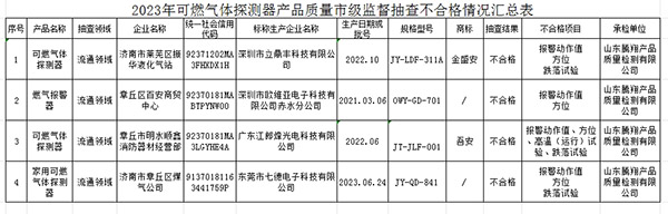 2023年市級監(jiān)督抽查共抽查流通領域和生產領域可燃氣體探測器產品15批次。