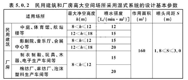 2當(dāng)民用建筑高大空間場所的最大凈空高度為12m<h≤18m時,應(yīng)采用非倉庫型特殊應(yīng)用噴頭。